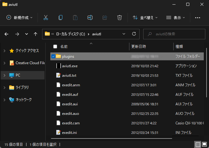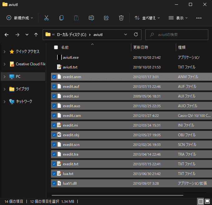 ダウンロードした「aviutl110.zip」を解凍し、中身をすべて移動させます。