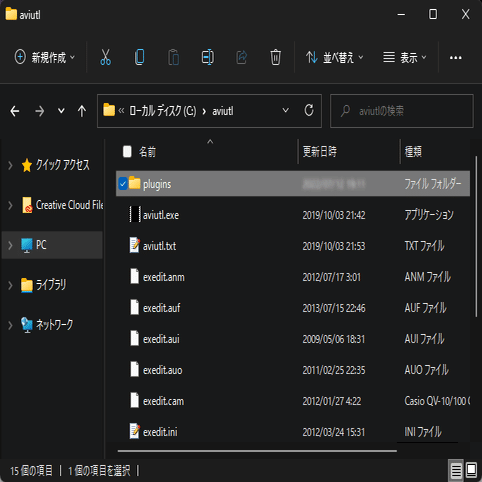 ダウンロードした「aviutl110.zip」を解凍し、中身をすべて移動させます。
