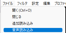 「ファイルタブ>音声読み込み」で音声ファイルを開く