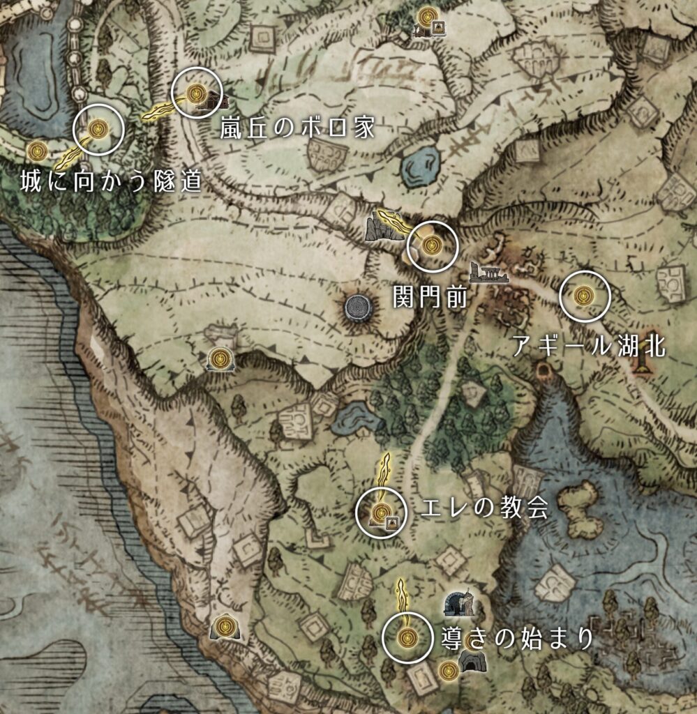 1. 「祝福:関門前」から廃墟の反対側にある「祝福:アギール湖北」のさらに東側に進む